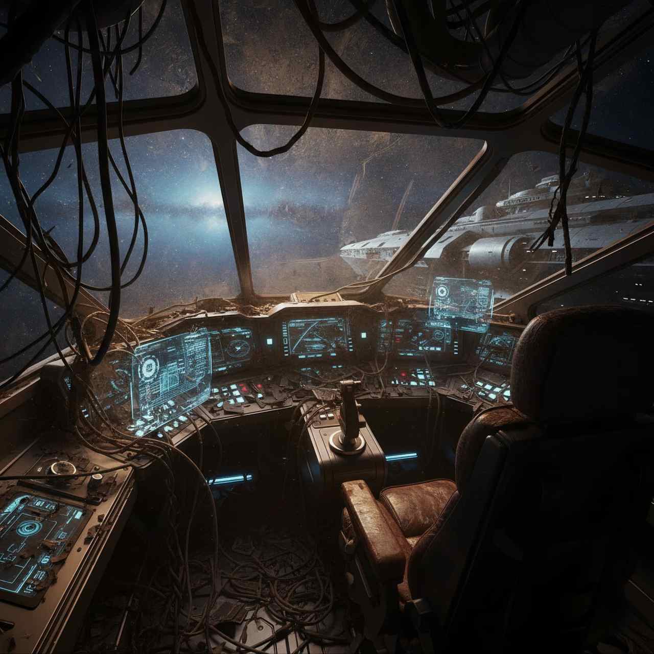 Sci-fi cockpit, futuristic, space, high quality.