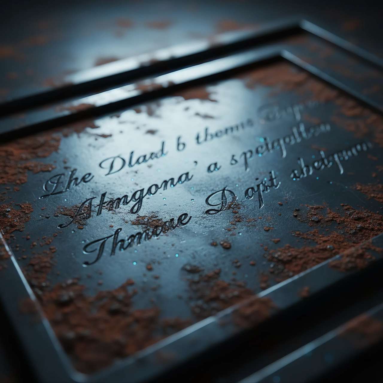 Metallic blue reflections(金属的な青い反射)と入れるだけで、一気に質感がリッチになります。
