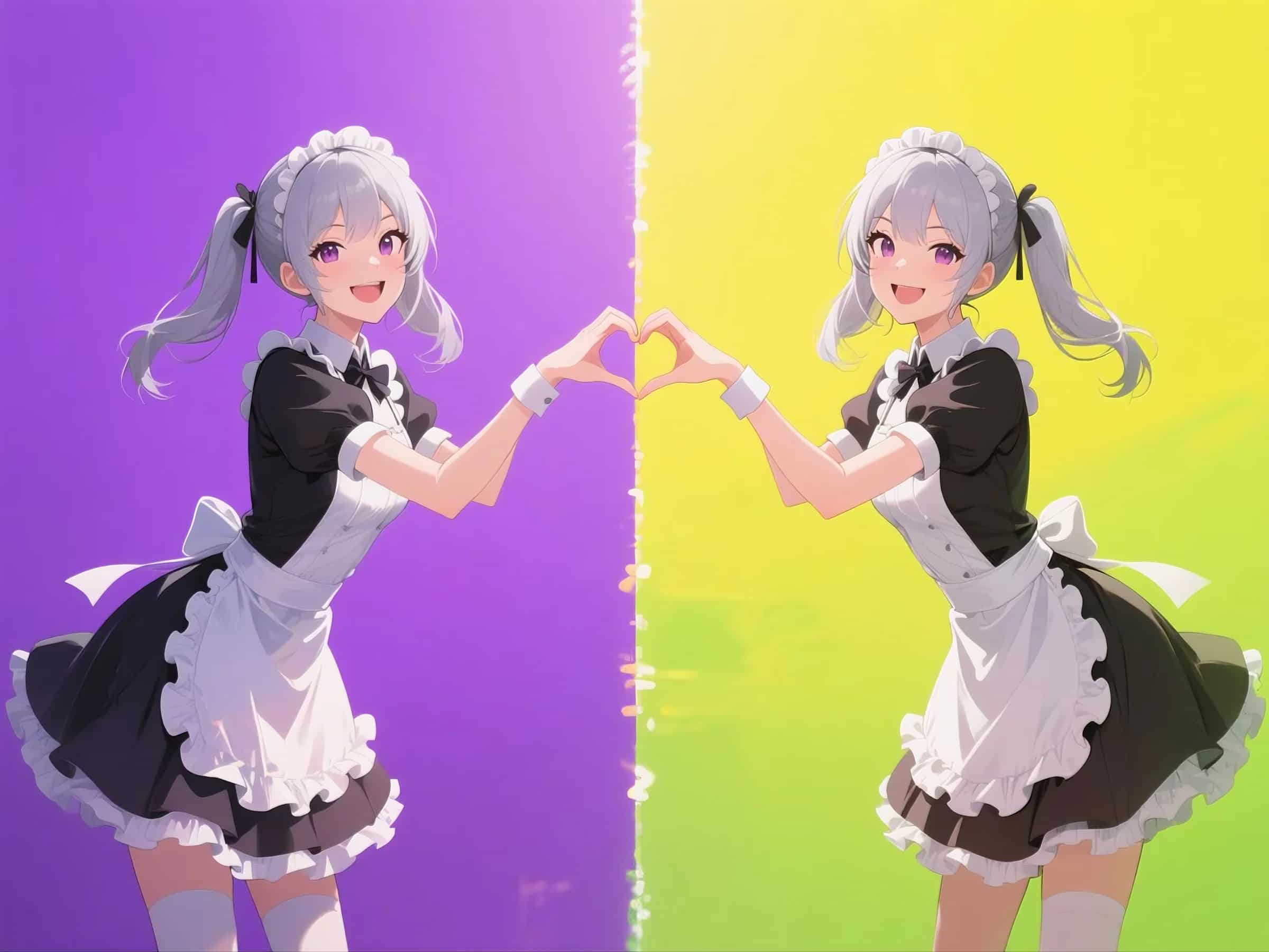 カンマの後に「動作」を置くと、AIは「見た目(属性)」を確定させた上で、その見た目全てに「躍動感(動き)」を上乗せします。