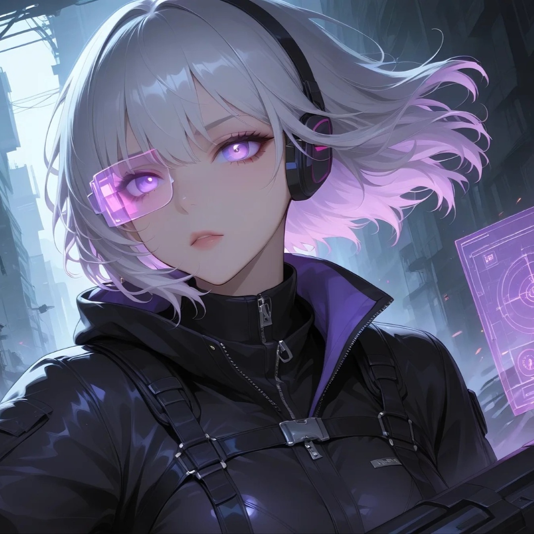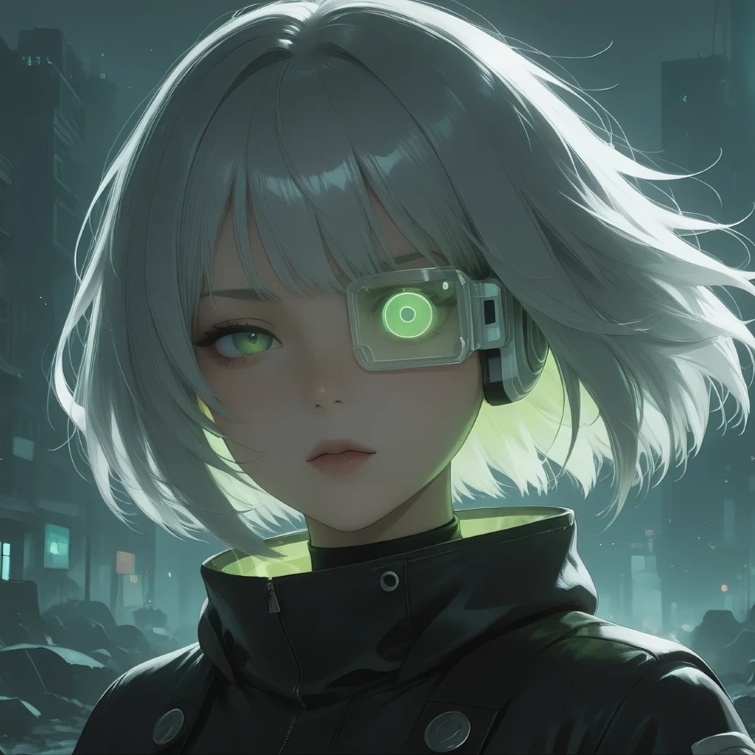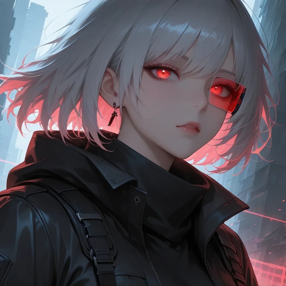 この画像は、銀髪ショートボブの女性が、戦闘力をはかる「スカウター」をつけているシーンです。相手を見据えるような顔の凛々しさが印象的です。